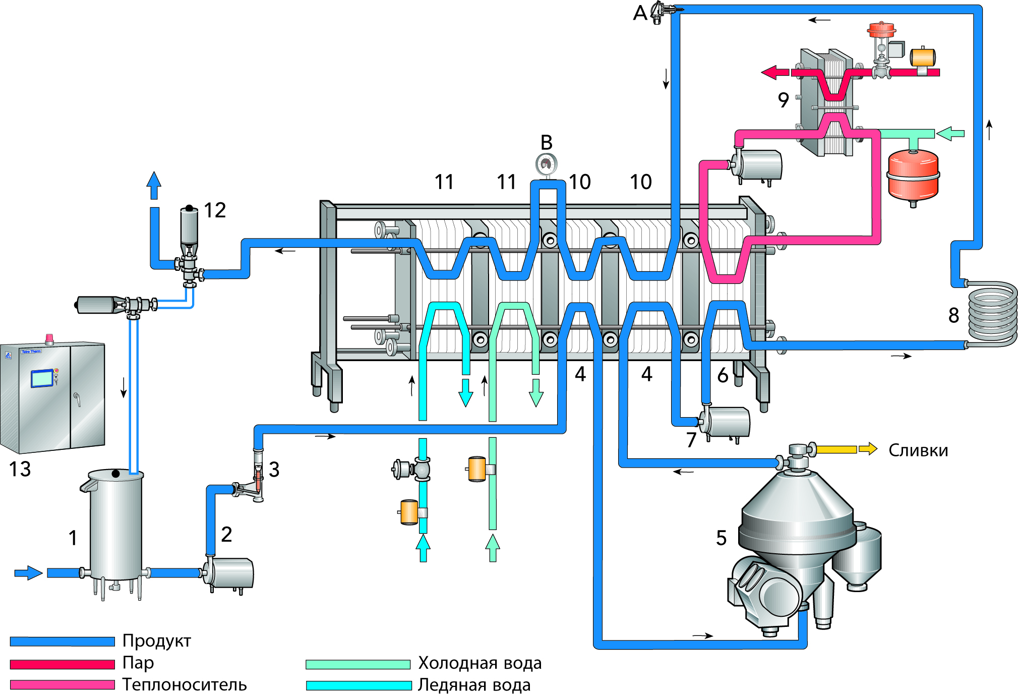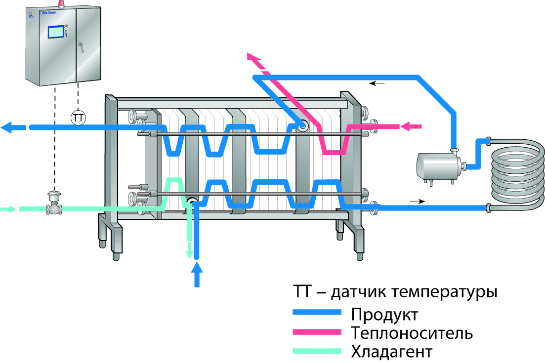 - оборудование для управления производительностью участка, температурой пастеризации и положением клапанов; различные вспомогательные системы:
