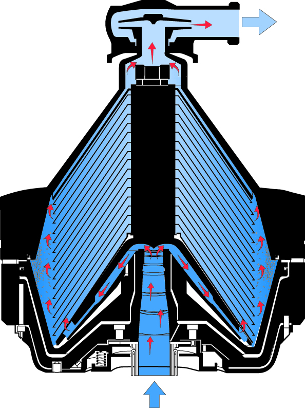 В нашем примере молоко не разделяется на сливки и обезжиренное молоко, поэтому здесь используется центробежный очиститель, представленный на рис. 7.6. Некоторые молочные заводы требуют центробежной очистки холодного (< 6 °С) сырого молока немедленно после доставки молока на завод, особенно если молоко будет храниться до следующего дня. Однако очистка при температуре около 55 °С более эффективна, поскольку вязкость молока при этой температуре ниже. В этом случае молоко, поступающее в очиститель, проходит через первую секцию регенеративного подогрева при 55 °С.