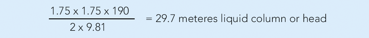 Пример. Скорость продукта в системе трубопроводов равна 1,75 м/с (диаметр труб 2,5 дюйма и расход 20 000 литров/час). Сумма коэффициентов сопротивления равна 190. Гидравлическое сопротивление будет равно: