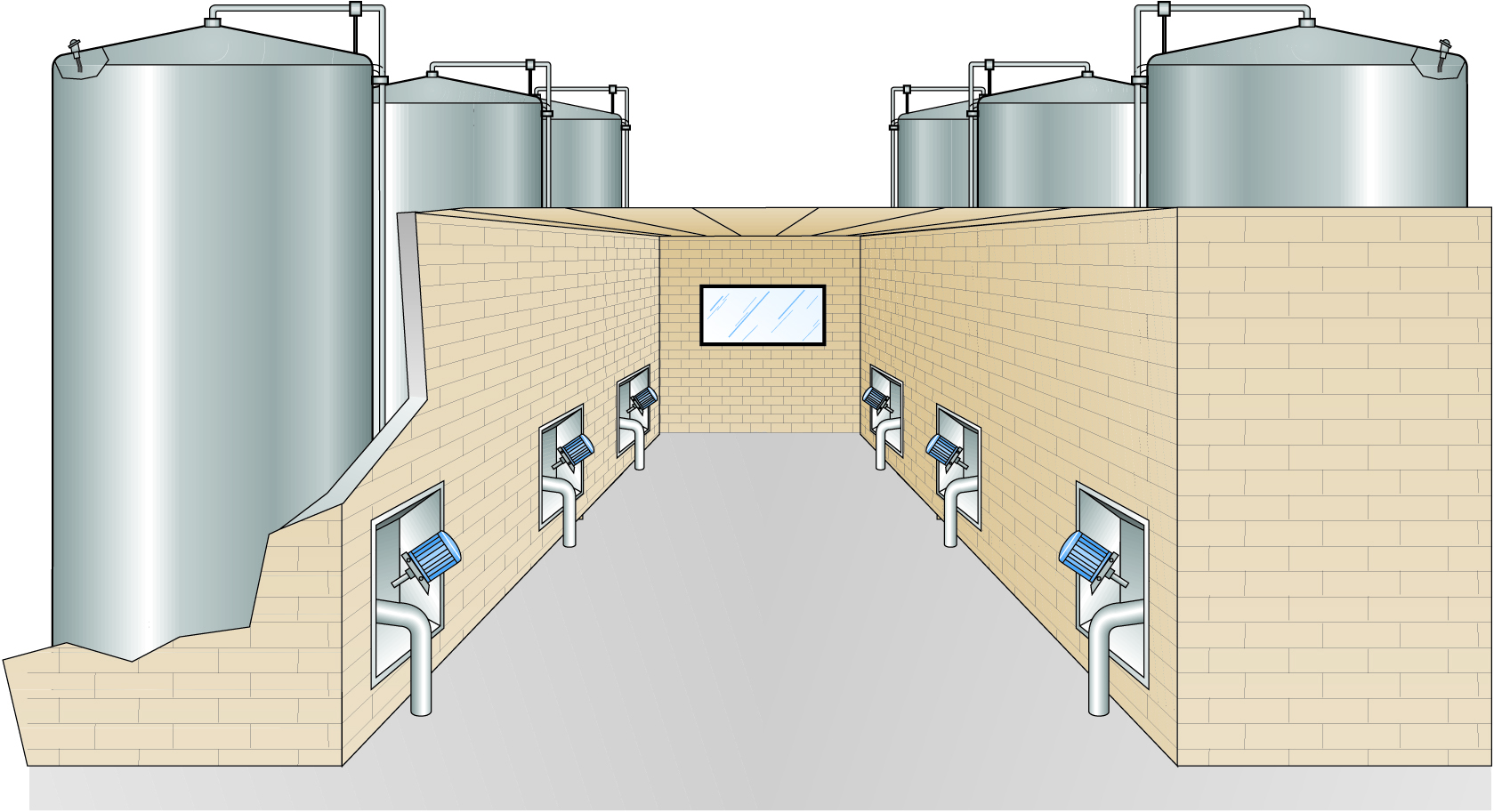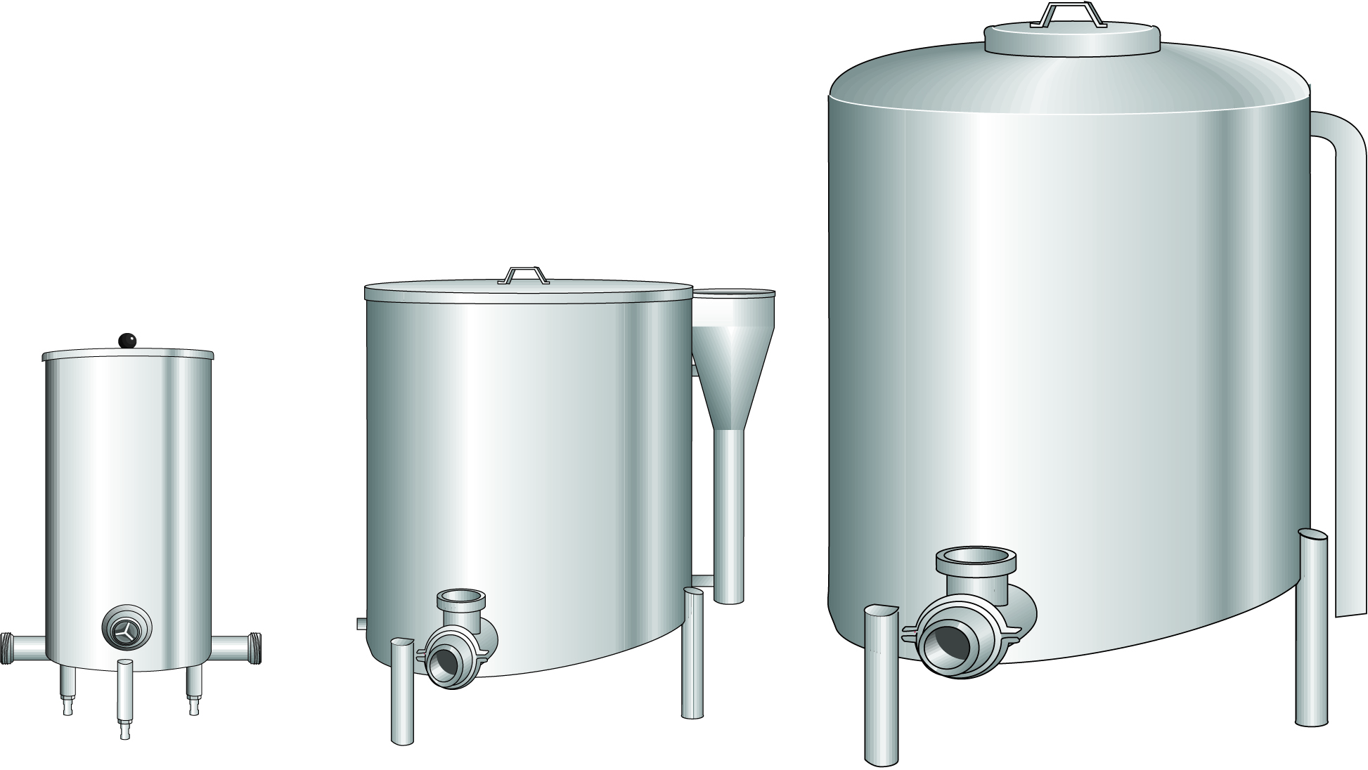 В молочной промышленности резервуары (танки) используются для различных целей. Емкость резервуаров может варьироваться от 150 000 литров для танков приемного отделения до небольших 100-литровых баков.