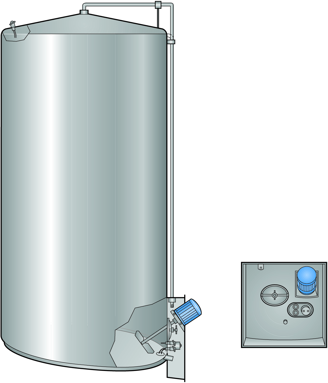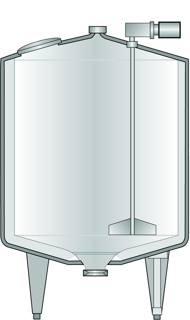 В этих танках(рис. 6.9.5) происходит обработка продукта, имеющая целью изменение его свойств. Такие танки широко используются в молочной промышленности, например, в качестве емкостей для созревания сливок при производстве масла, для сквашивания молока в производстве йогурта, кристаллизационных танков для взбитых сливок, танков для приготовления заквасок. Существует множество видов технологических танков. Их конструкция определяется назначением. Общим является наличие мешалкиисистемы контролятемпературы. Данные танки имеют стенки из нержавеющей стали с изоляцией или без нее. Может также устанавливаться оборудование для контроля и управления.
