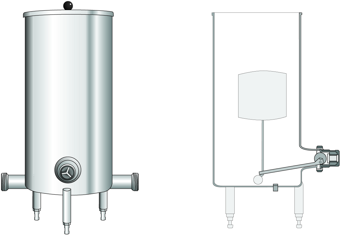Если насос забирает из танка больше жидкости, чем попадает в него через впускное отверстие, уровень жидкости опускается вместе с поплавком. Клапан открывается и впускает дополнительную порцию жидкости.Таким образом в танке поддерживается постоянный уровень жидкости. Сейчас аналогичной функциональности добиваются с помощью датчиков уровня, управляющих регулирующим клапаном.